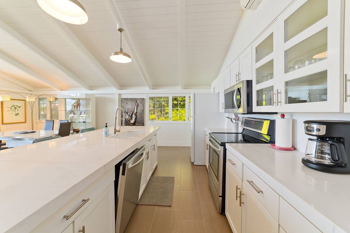 Equipped with eighteen owned solar panels, a Tesla Powerwall, water filtration system, and split A/C units throughout. The lovingly maintained yard includes Ti Leaf, Hibiscus, Hong Kong Orchid, Aloe, Papaya, and more. Currently occupied by short term tenant until 2/29/24, showings will commence 3/4/24.